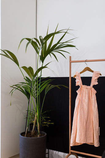 Our main challenge was to rearrange her apartment to include newly purchased items while keeping the majority of her existing furniture and items, and to upgrade the surrounding atmosphere accordingly. To do so we chose a monochromatic color palette inspired by Scandinavian design style and combined it with her existing colorful vintage pieces to create a laid back and effortless look. We wished to create a spacious living space for entertaining and a dreamy bedroom suite for our Tel Avivian Fashionista client, to achieve this we utilized a spare room to enlarge the living room and create a walk in closet.